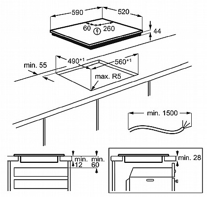 • מידות הכיריים (רxע) במ"מ: 520x590